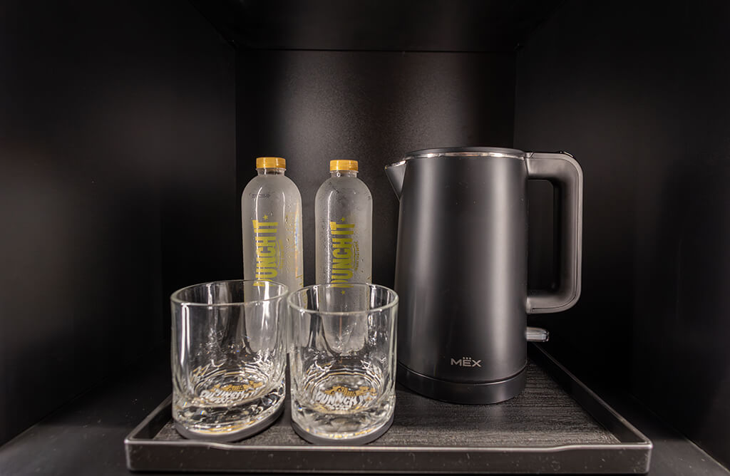 - Generous wardrobe & secure safe with enough space for long stays and large bags.